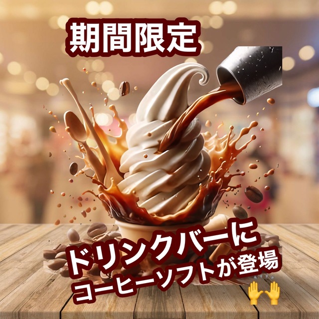 ドリンクバーのソフトクリームが期間限定でコーヒー味になりました
